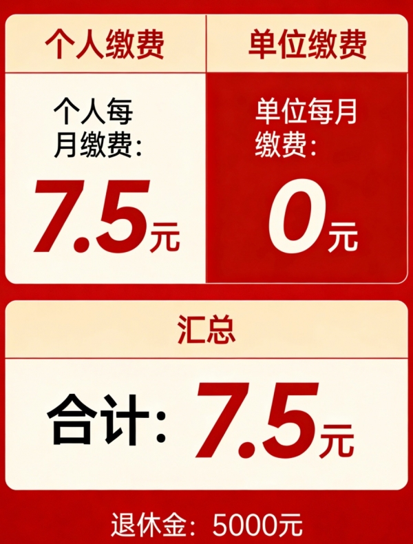退休人员:假设退休金5000元,每月7.5元