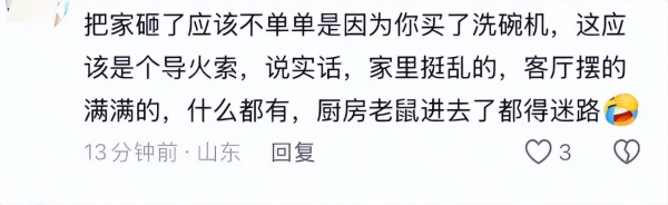 有不少网友表示理解女子的处境,"每天做那么多家务真的很累,洗碗机是刚需,丈夫不该这么极端。"