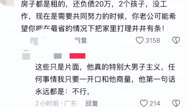 也有网友理解丈夫的难处,"一个人养全家还要还外债,压力确实大,可能是实在绷不住了才会爆发。"