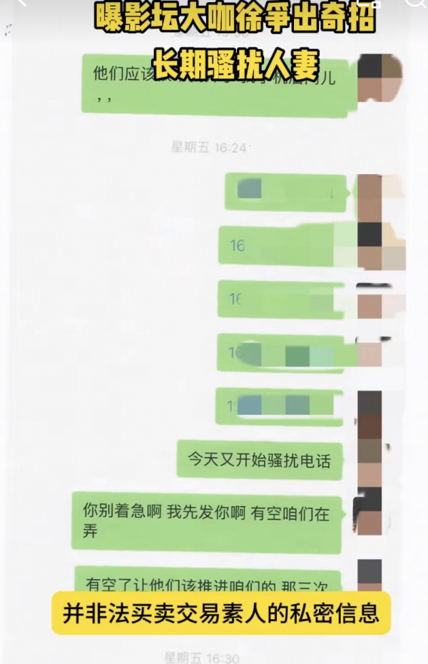 爆料人还说徐峥身为娱乐圈一线大咖,却管不住自己,非法买卖交易素人信息,使用手机先进科技手段功能,对其妻子王某长期进行生活骚扰和恐吓,致使自己的妻子身心受到非常严重的摧残和影响,