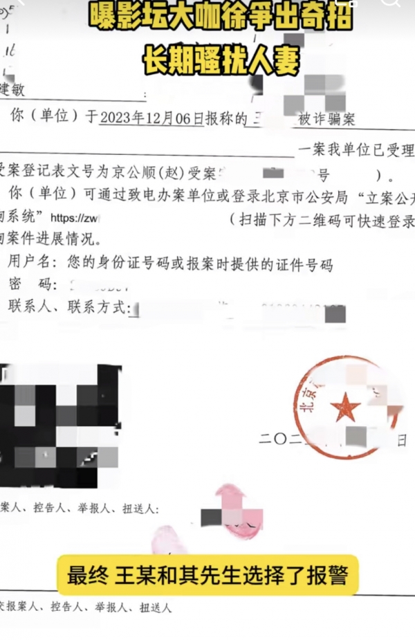 2023年4月,王某被徐峥用各种匿名电话进行骚扰,打电话的同时还会用各种app推送消息,并嚣张地告诉王某,王某对此不堪其扰,但是更换了新手机和新密码后,骚扰情况也没有缓解,最终王某和其先生选择了报警。