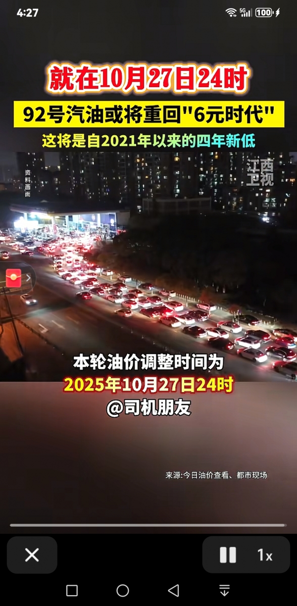 不过也要提醒大家,本轮油价调整时间是2025年10月27日24时,到时候记得留意油价变化,算好时间去加油,把实惠实实在在拿到手!