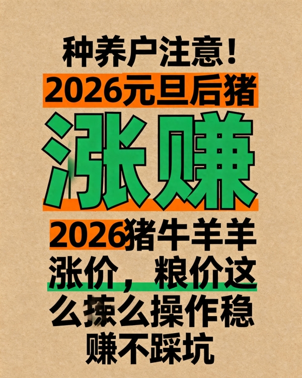 最后想跟大伙说句实在的,农产品价格涨跌是市场规律,不用看到涨价就贪,也不用看到跌价就慌。2026年元旦后的这波行情,是供需关系调整的结果,我们只要根据官方数据做决策,抓准出栏、卖粮的节奏,就能稳稳赚到钱。