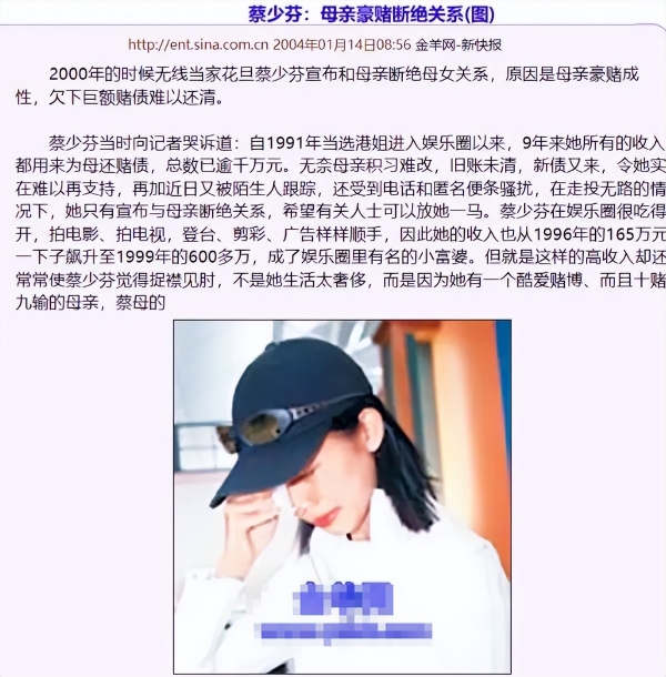 但她母亲的事情又为蔡少芬"添了把柴"。