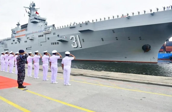 最先让澳洲侦察人员倒吸一口凉气的是这支舰队的吨位与构成。这不再是过去那种单枪匹马的试探,而是一次体系化的重装出击。在这个被称为"特遣舰队"的编队核心,赫然出现了一艘075型两栖攻击舰--澳洲人习惯称之为"玉申"级。