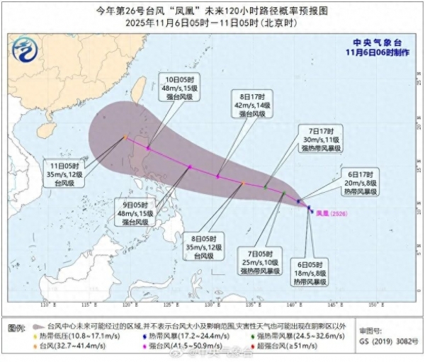中央气象台11月6日10时继续发布台风黄色预警。预计,"海鸥"将以每小时20-25公里的速度向西偏北方向移动,今天白天强度维持,晚上开始逐渐减弱,将于夜间在越南中部一带沿海登陆(40-45米/秒,13-14级,台风级或强台风级),之后强度迅速减弱。