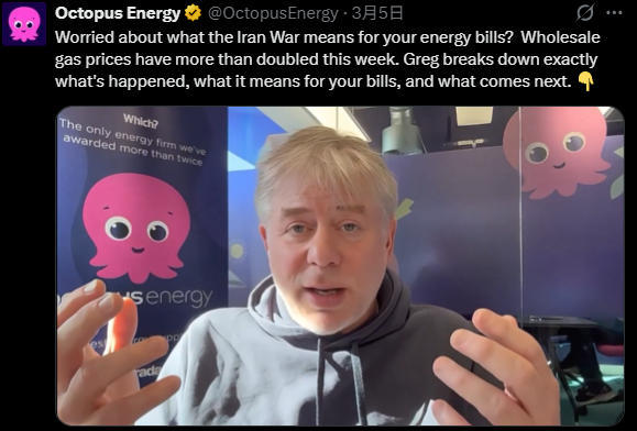 杰克逊向英国人阐述中东局势对能源账单的影响 推文截图