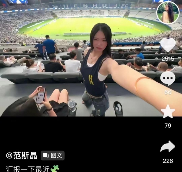 社交媒体上,范斯晶晒出自己的照片。范斯晶穿着黑色的运动背心!她站在观众席上。镜头的远处是足球比赛的赛场。很明显这是上海申花队的比赛。申花队门将马镇在范斯晶的社交媒体上留言表示,我们最近的幸福总结。随后范斯晶回了几个亲亲的表情包。这一动作也被球迷看作是两个人公开恋情!有消息称,此前两个人就多次在社交媒体上互动。看来球迷的质疑好像真的是真的!