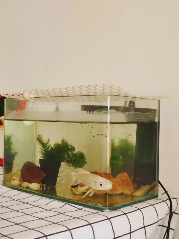 goldy习惯睡在鱼缸的一个角落里,有时候我在电脑前打字,用余光看它,它的眼睛也会瞥过来,我们就这样对视,那一刻,真的能感受到一条鱼的灵魂。很高兴,goldy还能在缸里安静自由地生活,我也是。