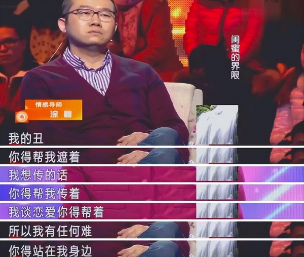 什么样的距离才是老公与闺蜜相处的最佳距离呢?涂磊曾一针见血指出:"当你把闺蜜当成工具--我的丑,我得帮我遮着;我想传的话,你得帮我传着;你谈恋爱你得帮着;我有任何难,你得站在我身边......"那么你也就为闺蜜与男友的靠近,创造了无数机会,开了无数绿灯。