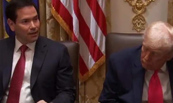 在鲁比奥发言的最后,这位国务卿开了个玩笑,内阁成员们哄堂大笑。而特朗普只是微微抿了抿嘴,眼睛微微睁开。