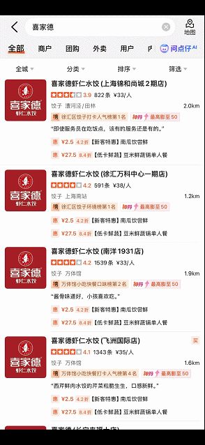 喜家德虾仁水饺门店
