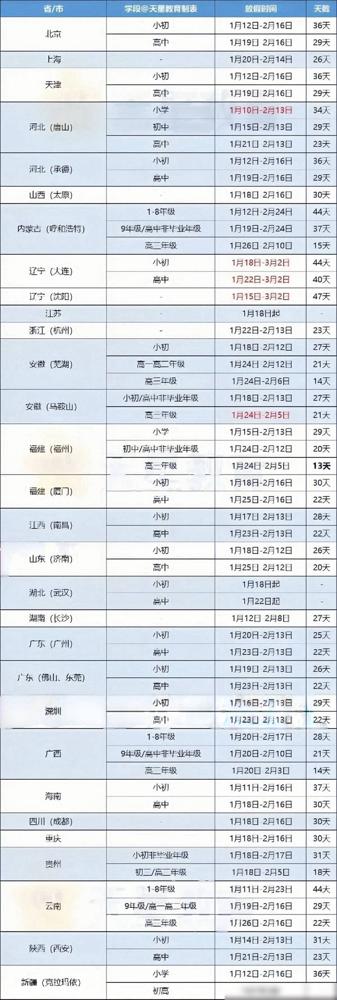 寒假不是"想放就放",背后有一套"隐形逻辑":北方比南方长(比如沈阳义务教育阶段放47天,上海只有26天),小学比初中长(比如北京小学36天,初中29天),高中比初中更短(比如福州高三只有13天)。原因很简单:北方冬天冷,适合延长假期;小学学业轻,需要更多休息;高中尤其是高三,要冲刺高考,假期自然短。另外,寒假时间通常"跨两年"--比如2025年寒假,其实是2024-2025学年的第二学期前的假期,所以你看到的"1月12日放"是2025年1月,"2月16日开学"是2025年2月,别搞混了。