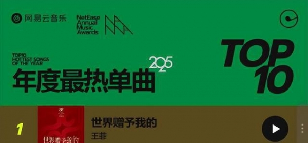 网易云音乐2025年年度最热单曲:王菲《世界赠予我的》