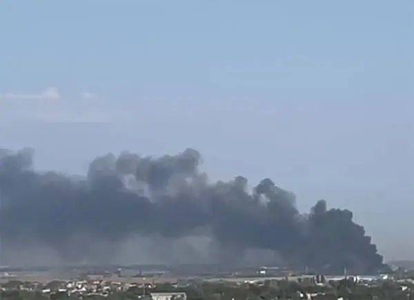 敖德萨在空袭后腾起的浓烟 社交媒体