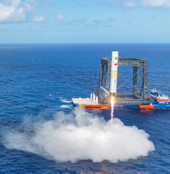 长征十号甲验证箭在回收船旁完成最后减速