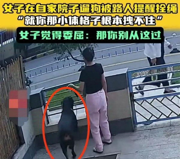 近日,一则关于遛狗的争执在社交媒体上引发了热议。一名女子在自家院子内遛狗时未拴绳,被路过的行人提醒后,双方产生了激烈的争执。这名女子表示自己在自家院子里遛狗,狗不拴绳是正常的,她感到很委屈,甚至回应道:"那你别从这过。"