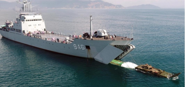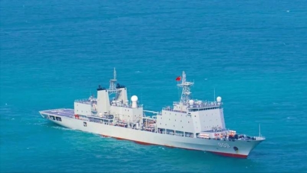 当时在现场执勤的,有054A护卫舰大理舰,还有072型登陆舰九华山舰,旁边还有901型补给舰查干湖舰配合。