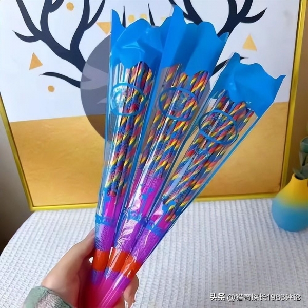 木杆裹上火药等,然后缠上彩色的包装纸,就叫狗尾草烟花!
