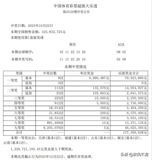 本期大乐透销量为3.25 亿,筹集社会公益金1.17 亿。