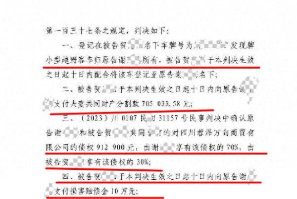 自2021年7月起到2023年4月,小谢在两年期间被丈夫贺某阳家暴16次,导致内脏多处不同程度受损,鉴定为4个重伤二级、5个轻伤二级和1个轻微伤。贺某阳还恶意转移夫妻共同财产200万元,其中90万元未归还。一审判决贺某阳母亲返还91万余元,贺某阳因故意伤害罪和虐待罪被判处有期徒刑十一年,需赔偿小谢37万余元。贺某阳母亲在一审判决后不服判决结果,提起上诉。