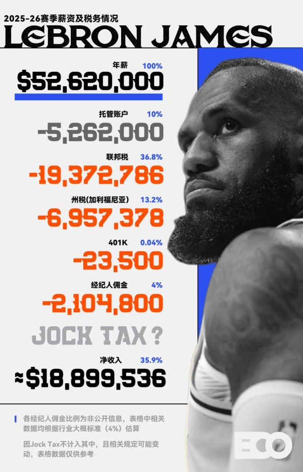 本文,我们就来把这些数字一条条拆开,还原一下NBA球员动辄上亿的工资单上,到底有多少是真实的可支配财富。
