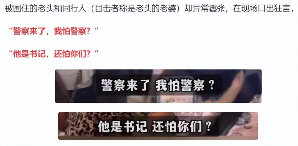 当地派出所接到报警后也赶到了现场。对此,警方表示人是抓去了,但是后续咋处理的,就含糊其辞了。这不禁让人浮想联翩:难不成老头真有什么了不起的背景?凭啥他能逍遥法外,为所欲为?