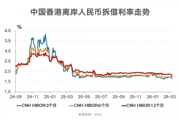 此外,从香港离岸人民币拆借利率的走势也能看出,目前各期限利率基本保持在2%以下(见下图),且稳中有降。这种低成本、高效率的融资环境,确实为提升人民币国际融资功能提供了一个难得的有利时机。