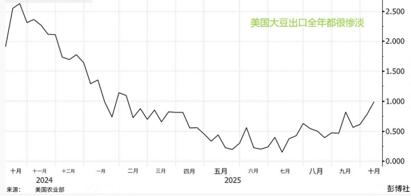 而且哪怕这次中美在釜山再次达成了"休战协议",这一趋势也不会被逆转。根据白宫的说法,中国将在未来3年每年购买2500万吨大豆--中方尚未证实这一说法,但就算是真的,那这个数字也低于2024年(2700万吨)。