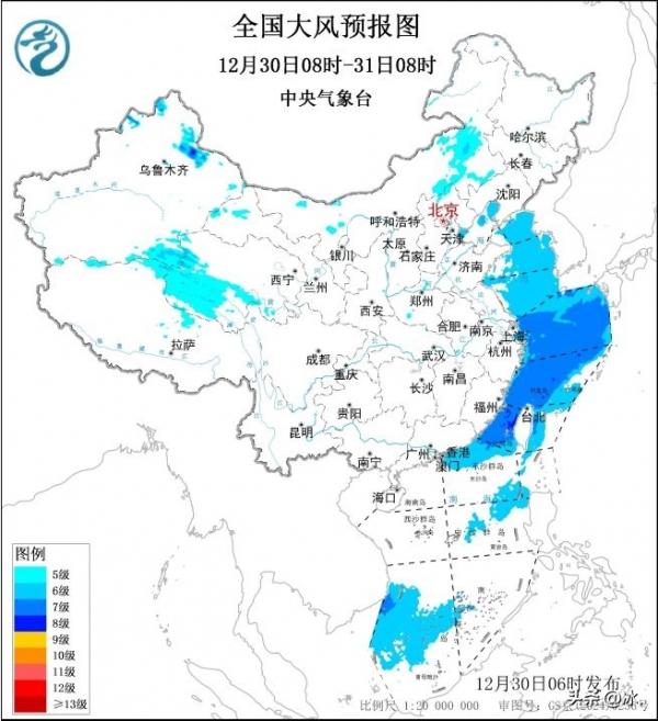 · 12月30日 (周二):多云,东北风4到5级,气温4~15℃。