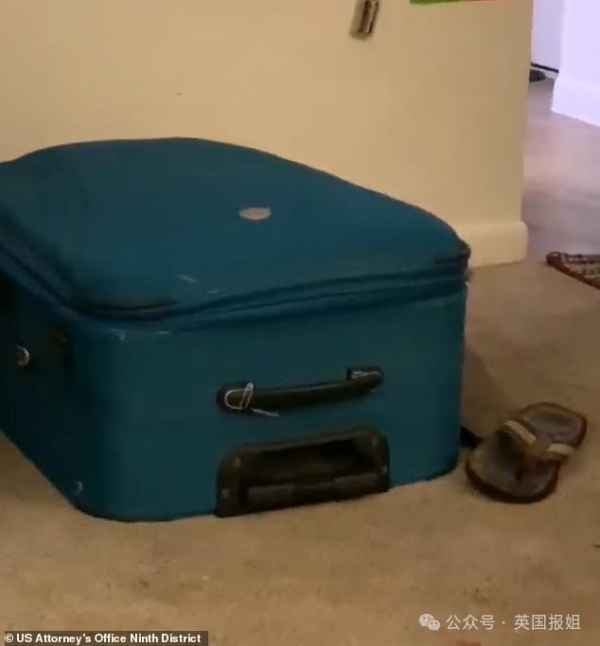 男友托雷斯觉得躲进行李箱很好玩,于是布恩按他的指示,帮藏身在行李箱中的托雷斯拉好拉链,仅留2根手指在外面后,她就去了二楼。