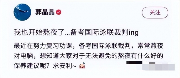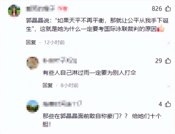郭晶晶说:"如果天平不再平衡,那就让公平从我手下诞生",这就是她为什么一定要考国际泳联裁判的原因。