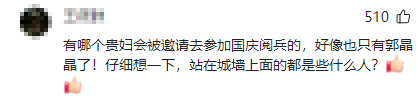 有哪个贵妇会被邀请去参加国庆阅兵的,好像也只有郭晶晶了!仔细想一下,站在城墙上面的都是些什么人?