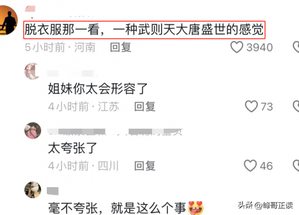 "脱衣服那一刻,一种武则天大唐盛世的感觉。"