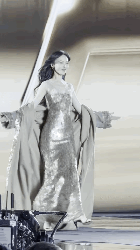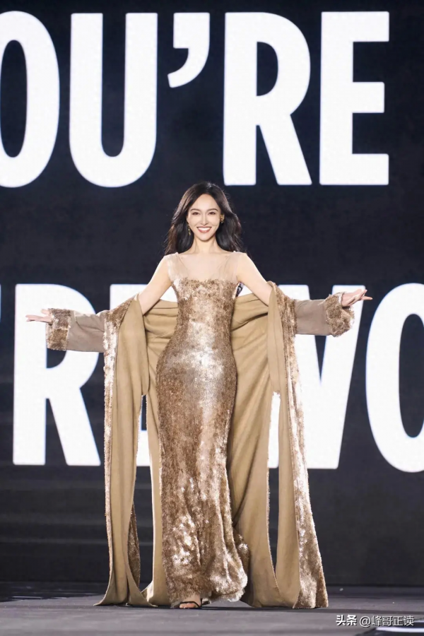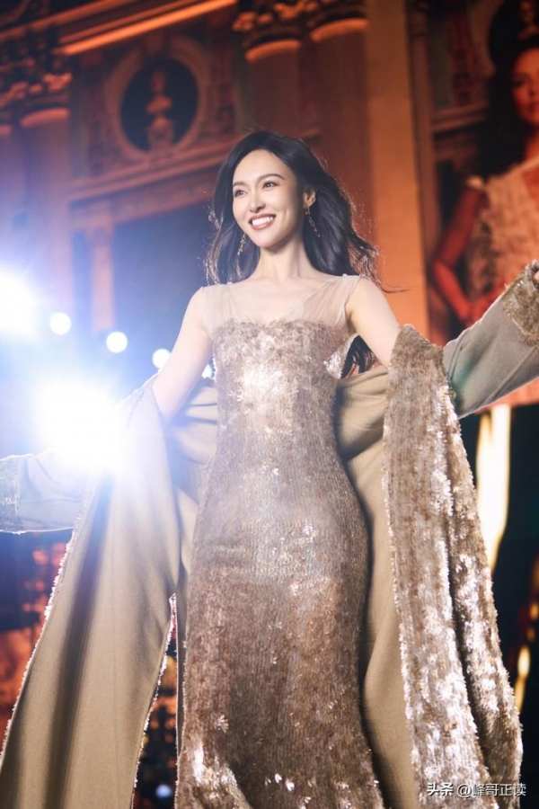 当天唐嫣身穿一袭鎏金长裙,外加一个同类型披风,这套衣服在灯光下熠熠生辉。