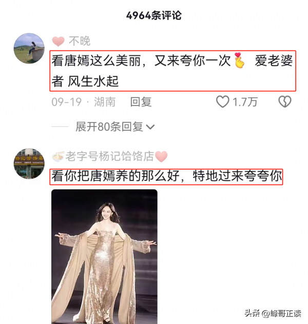 看到唐嫣被照顾得这么好,她的粉丝和网友也纷纷涌到了罗晋的评论区当起了夸夸团:看到唐嫣依旧这么美,就来夸夸你。