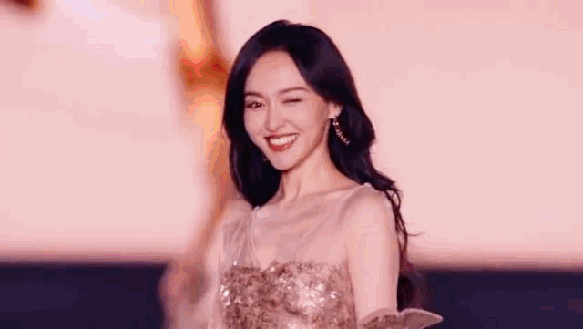 这套贴身金色长裙勾勒出唐嫣窈窕的身材,行动间,波光闪闪。