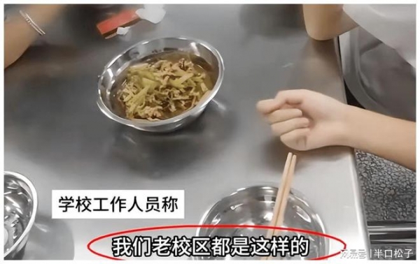 不是一个菜,是两盆菜,两盆菜这些学生都吃不完,我们老校区都是这样的,以前都是这样流传下来的。"