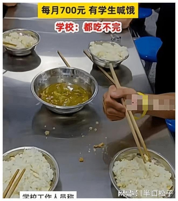 不少学生家长也吐槽,四个学生吃一盆菜,既不卫生,分量也不够,正值长身体的孩子,怎么可能吃得饱呢?否则的话,孩子怎么会大喊饿死我了呢。