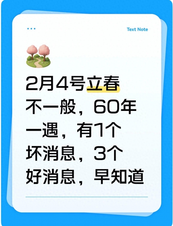 其实这个坏消息,说到底就是"提前防范就能避免损失",只要不心急,做好保暖和防冻,这个开春的小麻烦,完全可以轻松避开。而接下来的三个好消息,才是这个60年一遇立春的核心亮点,关乎农事丰收、生活顺遂和全年健康,每一个都值得我们好好把握。