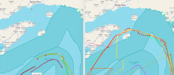 其中,12艘船只走的是穿越伊朗领海的新航线。