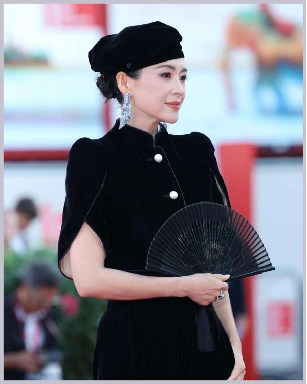 威尼斯电影节期间,章子怡穿着一套秋冬高定登场。