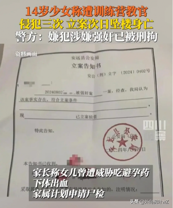 女孩儿家长还称女儿曾遭威胁吃避孕药,下体出血,家属计划申请尸检。