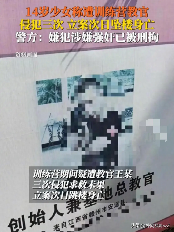 这事发生在江西安远,一名14名少女姜睿(化名)刚刚经历了中考,之后他的父母为了锻炼她的意志力,就给她报名了一个全封闭的训练营,结果却不成想,却把自己的女儿推向了万丈深渊。