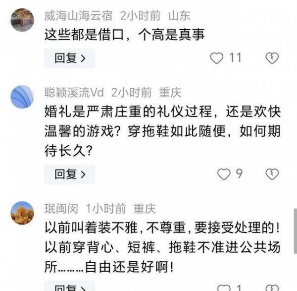 在这场舆论风暴中,"尊重"成为了一个高频词汇。反对者认为新娘穿拖鞋是对宾客的不尊重,支持者则认为每个人都有选择的权利,旁人应该尊重新娘的选择。这两种观点看似对立,实则反映了人们对"尊重"的不同理解。尊重并非单向的,而是双向的。新娘有权选择自己喜欢的穿着方式,宾客也应该尊重新娘的选择。真正的尊重,是理解和包容,而不是强加于人。