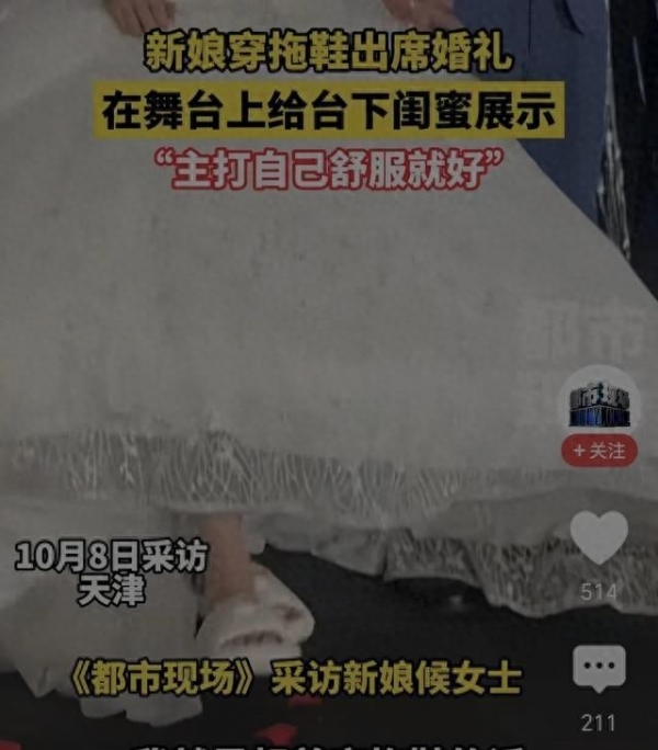 这场婚礼的主角,是一位来自天津的新娘。她身着洁白的婚纱,妆容精致,举手投足间流露着幸福的光芒。当她向台下的闺蜜展示脚上的拖鞋时,一切都变了。这双舒适的拖鞋,如同投入平静湖面的一颗石子,激起了层层涟漪,迅速蔓延至整个网络。有人赞同,有人反对,有人理解,有人质疑,众声喧哗,莫衷一是。