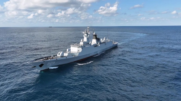 而除了巡航的解放军舰艇外,054A护卫舰"马鞍山"号也在当天开展了实弹射击训练,而划下的禁航区正是黄岩岛以东海域。这种在争议岛礁周边海域划定禁航区并开展实弹射击的行为,是解放军一种强有力的威慑行为。