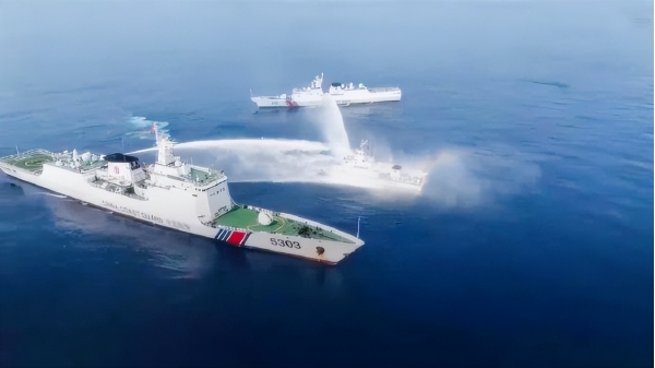 而根据菲律宾海岸警卫队的说法,一艘编号为3014的军用巡逻艇遭到中国海警船的水炮驱离,当时这艘船正在为所谓的"专属经济区内的渔民提供补给",结果遭到了多艘中国海警船的挑衅。
