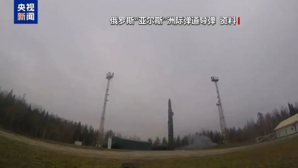 图为俄罗斯"亚尔斯"洲际弹道导弹 图:央视新闻