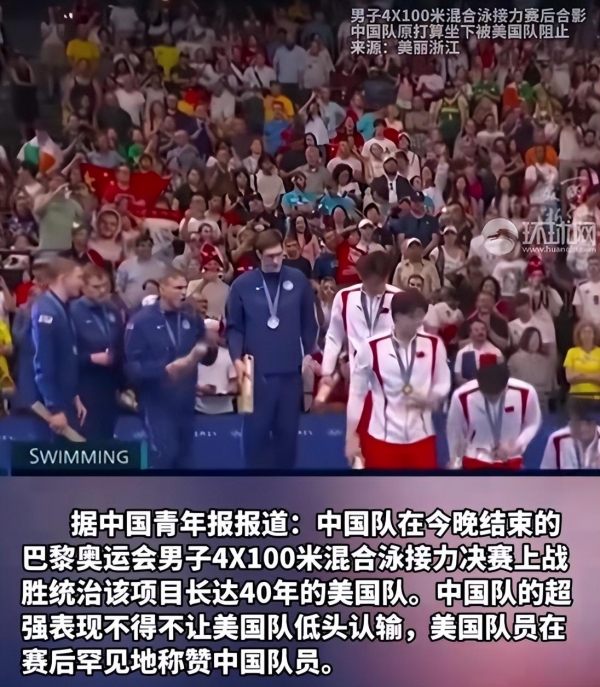在巴黎奥运会男子4x100米混合泳接力决赛中,中国队表现出色,成功打破了美国队在该项目上的长期垄断。美国队在赛后不得不低头认输,并对中国队表示了罕见的称赞。